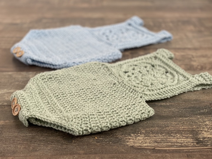 This is a PATTERN for crocheted Femke Baby Dungarees!