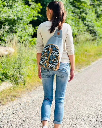 Mel ist eine stylische, mittelgroße Sling Bag, die quer über den Rücken getragen, eine überaus praktische Begleiterin ist und Platz für alle wichtigen Dinge bietet. Form und Aufteilung der Tasche lassen dir jede Menge kreativen Spielraum und die beiden verschiedenen Taschenfronten sorgen für zusätzliche Möglichkeiten. Mit dem längs angebrachten Reißverschlussfach ergänzt du den eigentlichen Verschluss der Tasche perfekt und setzt je nach Farbwahl schöne Akzente. Die andere Taschenfront punktet zweifellos mit der außergewöhnlichen Verschlussklappe in Kombination mit dem dekorativen Verschluss. Zusätzliche Fächer innen und außen sorgen für die nötige Ordnung und Übersicht. Die Sling Bag ist eher ein Projekt für Fortgeschrittene, aber auch ambitionierte und geübte Anfänger können sich, mit einem gewissen Maß an Zeit und Geduld, auch daran wagen.