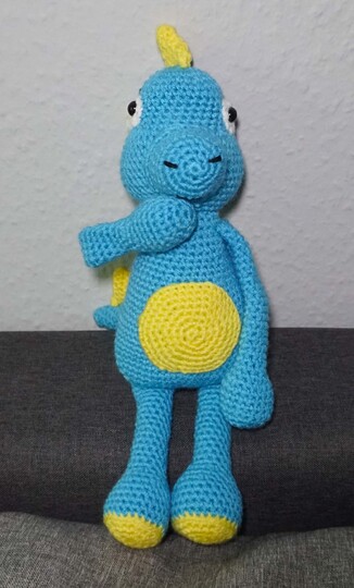 Here we offer you crochet Pattern for the Dino Yellblue!