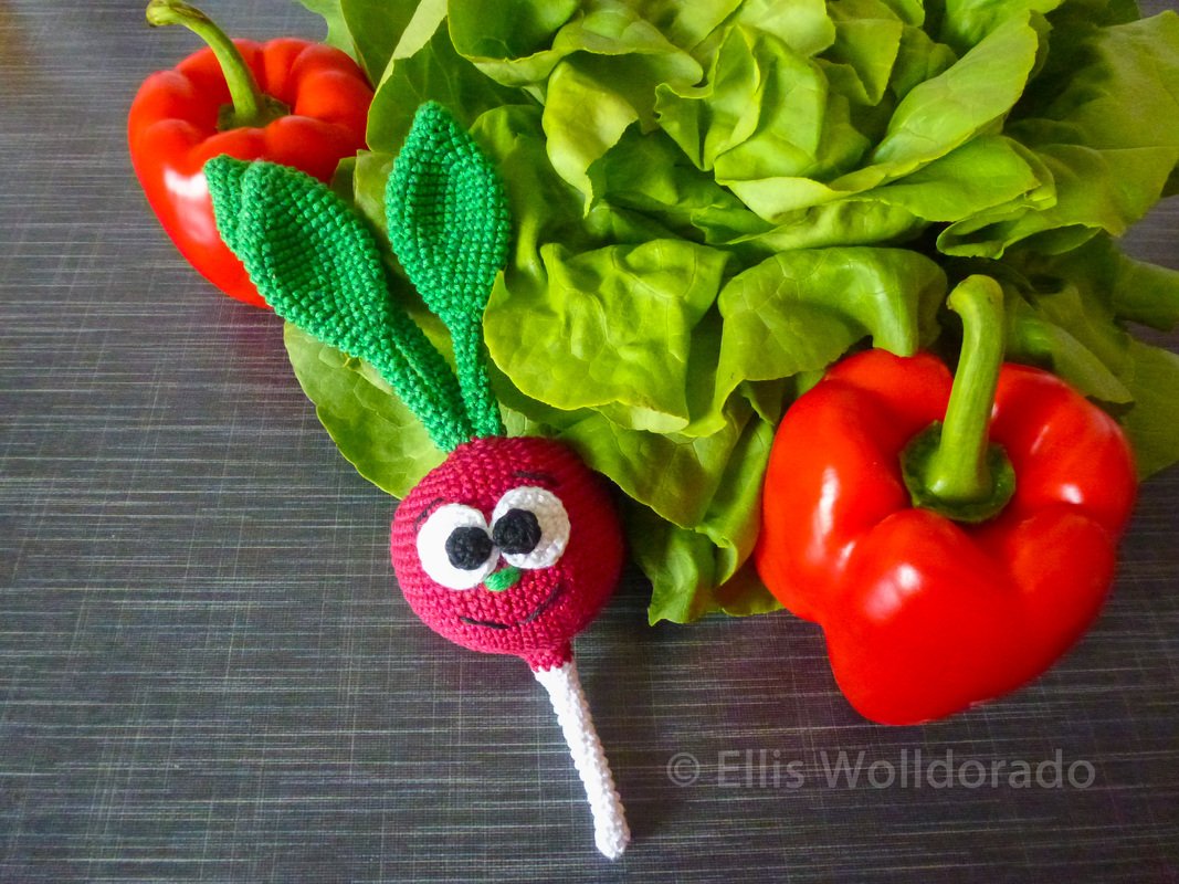 In der hier erhältlichen Häkelanleitung (PDF-Datei) wird Dir erklärt, wie Du das Radieschen Rocco nacharbeiten kannst. Die Anleitung enthält viele bunte Bilder, die Dir helfen, Schritt für Schritt eine wie auf den Fotos abgebildete Figur anzufertigen.