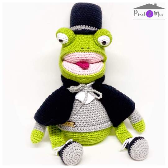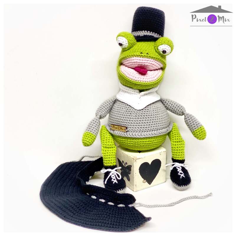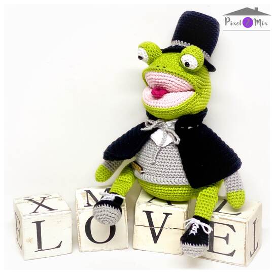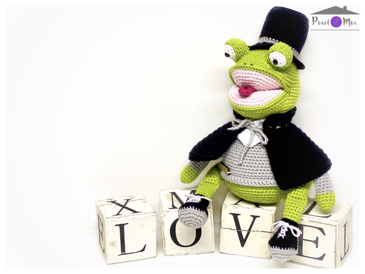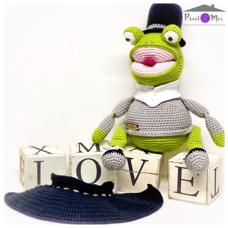 I am a PDF Digital Amigurumi crochet pattern in Dutch and English. You can make Little Karel * The Groom Frog yourself with this pattern, so that you can cuddle and play with Little Karel, but you can also use it as decoration.