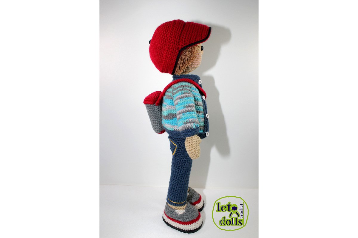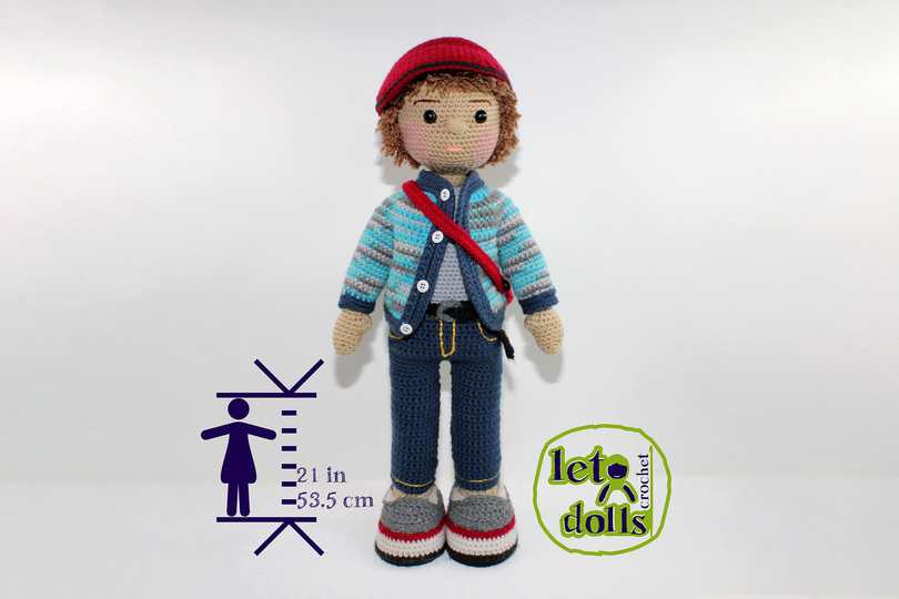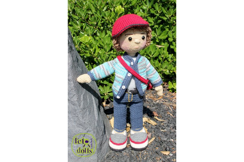 This listing is for a crochet pattern to make the pictured Alex doll.