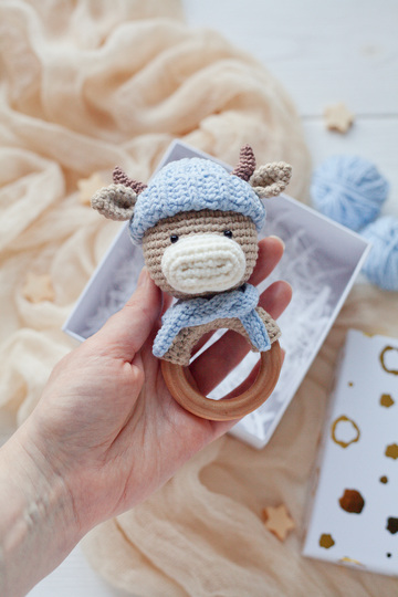 Using this amigurumi bull rattle crochet pattern in English, you yourself can crochet a rattle for your baby or grandchildren.
