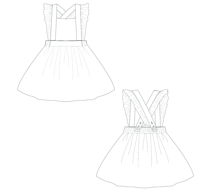 With the LIVIA sewing pattern you can sew a playful, vintage-inspired pinafore dress in a dungaree style for babies and kids. LIVIA features a lined bodice, a gathered skirt, and a comfortable elastic waist—great for active little ones. The adjustable ruffle straps add a sweet look and help the dress grow with your child.
