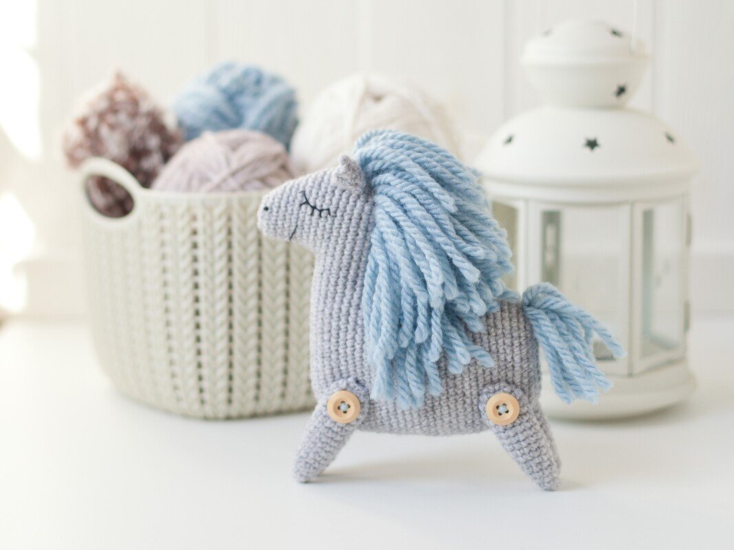 A cute pocket horse will be a great gift for any occasion! You can use any worsted yarn for the body and legs and any yarn for the mane, including fancy yarn.