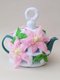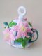 The Floral Clematis Birdcage tea cosy fits a medium sized tea pot that covers a Teapot that holds 6 to 8 cups or 2 pints.