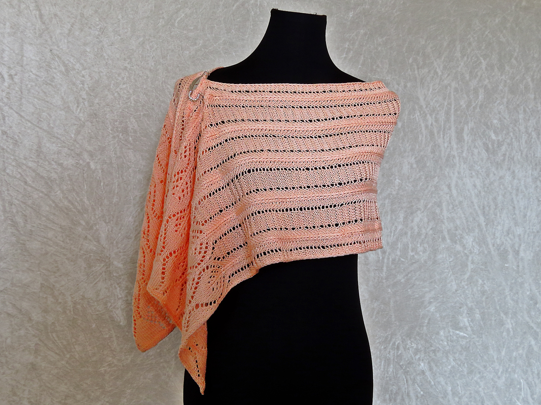 The shawl is knitted seamless from bottom to top.