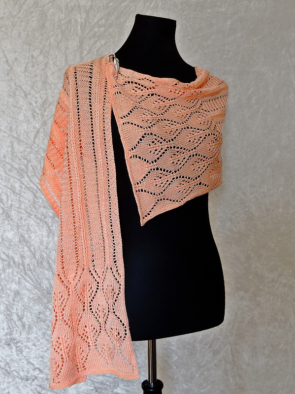 Extending the report the scarf turns into a stole or wrap that fits into a delicate summer dress or evening wear.