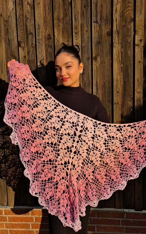 Thanks to the detailed written crochet instructions and the clearly structured digital crochet chart, the shawl can be worked comfortably and confidently by crocheters with basic skills. Step by step, a unique triangular shawl takes shape, combining lightness, elegance, and a personal creative touch.