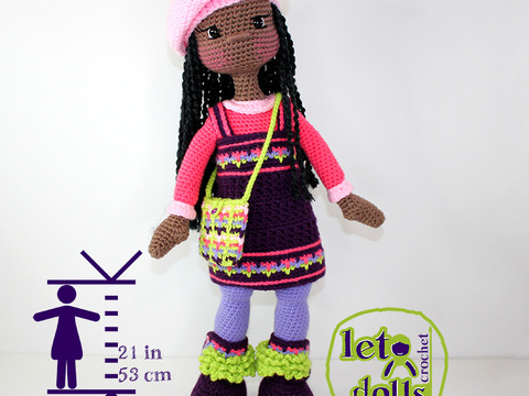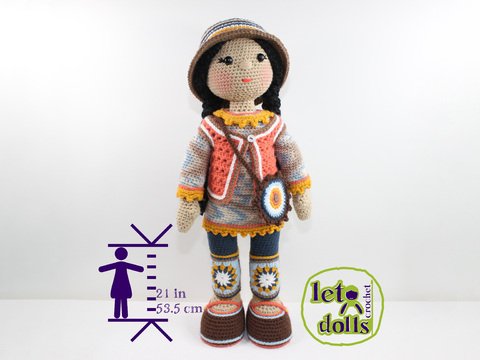 This listing is for a crochet pattern to make the pictured Nora doll.