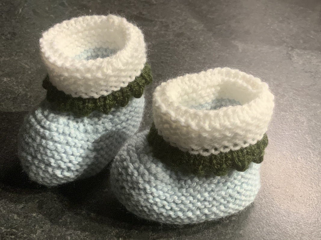 Bei etwas stärkerem Garn werden bei gleicher Anleitung die Schuhchen etwas größer - also für die nächstfolgenden Wochen und Monate des Babys.