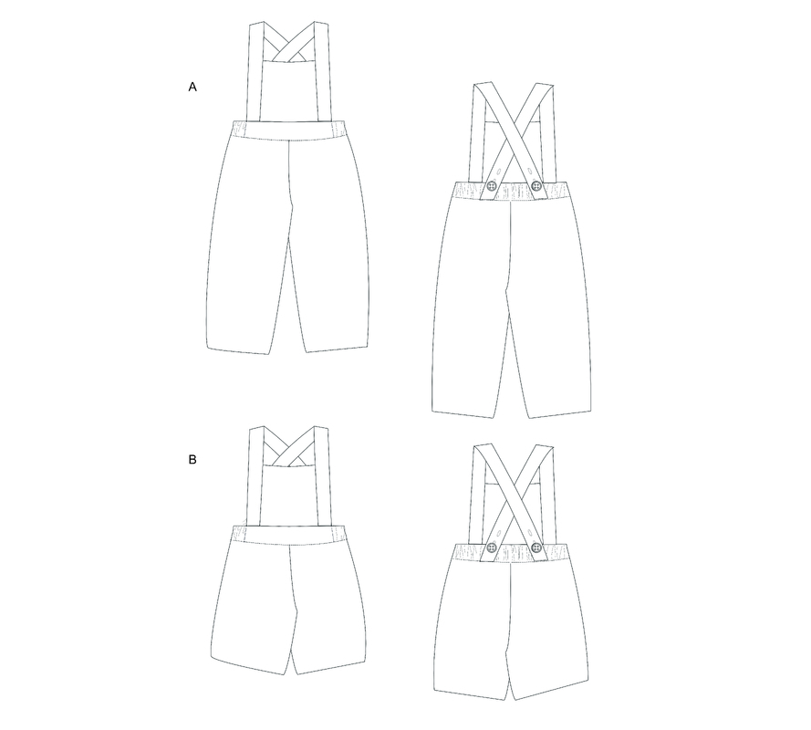 With the MAX sewing pattern you can make cute and comfortable overalls for babies and kids. MAX includes two versions—long and short—so it works for any season depending on your fabric choice. The adjustable straps with buttonholes help MAX grow with your child.