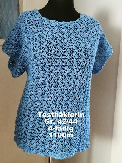 Das Shirt „Magic Summer“ wird in einem Stück, beginnend am Saum des Vorderteils, über die Schultern hinweg, bis zum Saum des Rückenteils gehäkelt. Wir arbeiten in Hin- und Rückreihen.