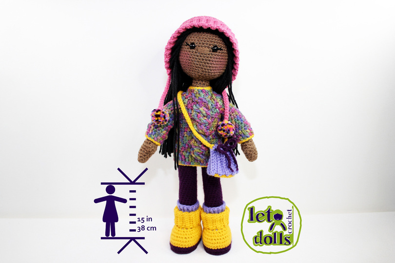This listing is for a crochet pattern to make the pictured Xyla doll.