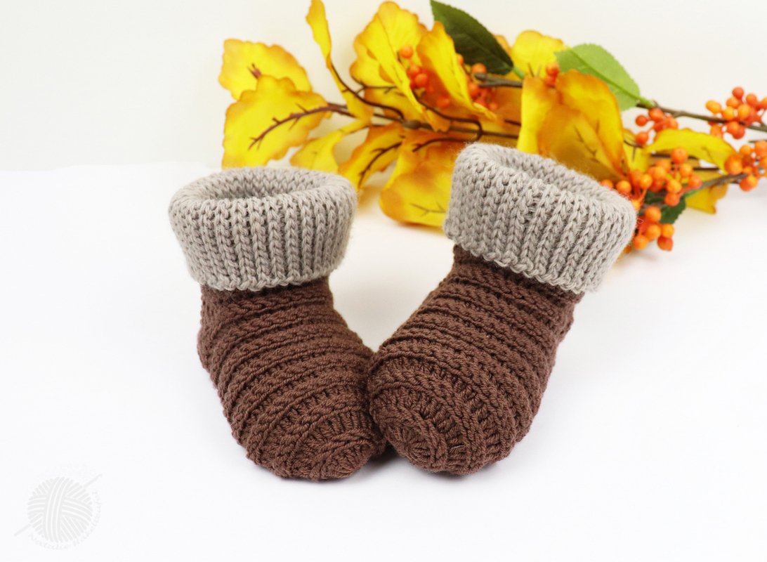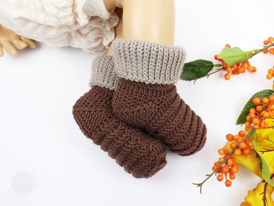 Crocheting soft and stretchy socks for babies and children in a knitted look for your child or grandchild is quick and easy with this crochet pattern!