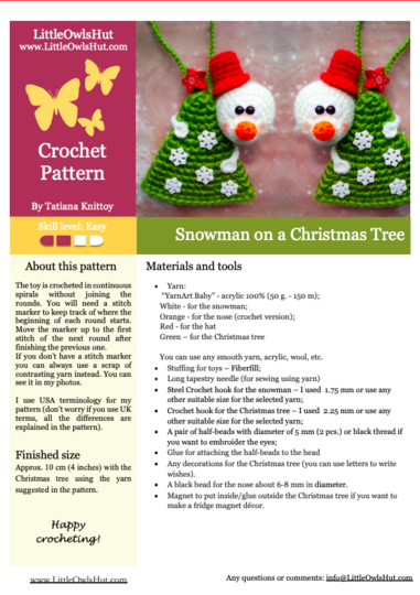 • Steel Crochet hook for the snowman – I used 1.75 mm or use any other suitable size for the selected yarn;
