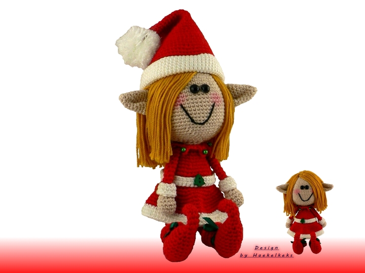 Wir verkaufen hier die passende, leicht verständliche und bebilderte Häkelanleitung zur Weihnachtselfe Elly incl. Weihnachtsmütze.