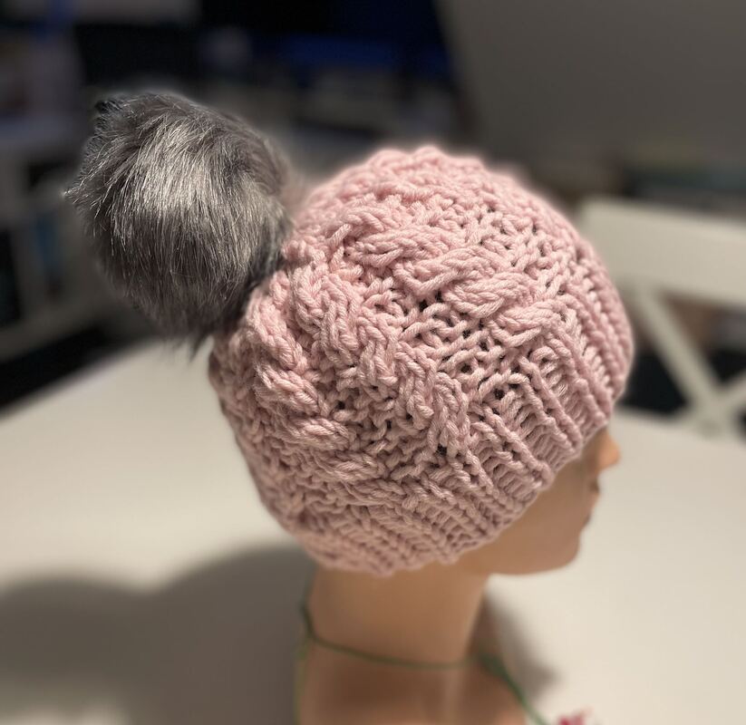 Sie sind auf der Suche nach einer Strickanleitung für eine moderne Wintermütze? Dann ist diese Anleitung für eine Bommelmütze im Zopfmuster perfekt für Sie. Die Mütze besticht durch ihren schönen Rosefarbton und den grauen Kunstfellbommel, der ihr eine extra Portion Eleganz verleiht. Dank der Verwendung von dicker Mützenwolle hält sie auch an kalten Wintertagen angenehm warm. Das aufwendige Zopfmuster ist ein echter Hingucker und macht die Mütze zu einem modischen Accessoire. Mit einem Kopfumfang bis 55 cm passt sie sowohl Damen, Herren als auch Kindern. Die leicht verständliche Strickanleitung ist mit zahlreichen Bildern ausgestattet, sodass das Stricken zum Kinderspiel wird.