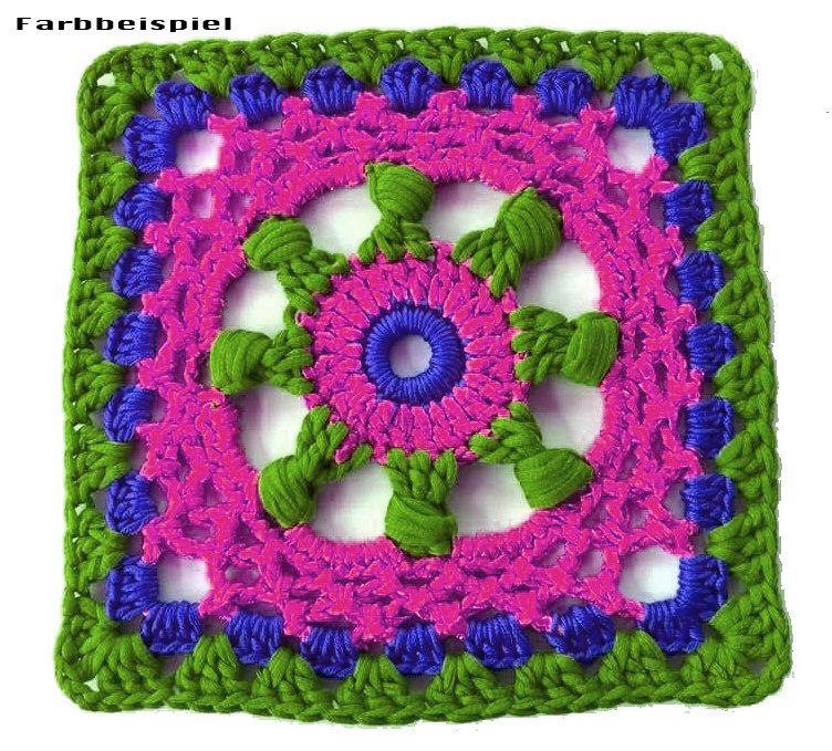 Das fertige Grannymuster ....bei 8 RUNDEN eine Seitenlänge von 18 cm