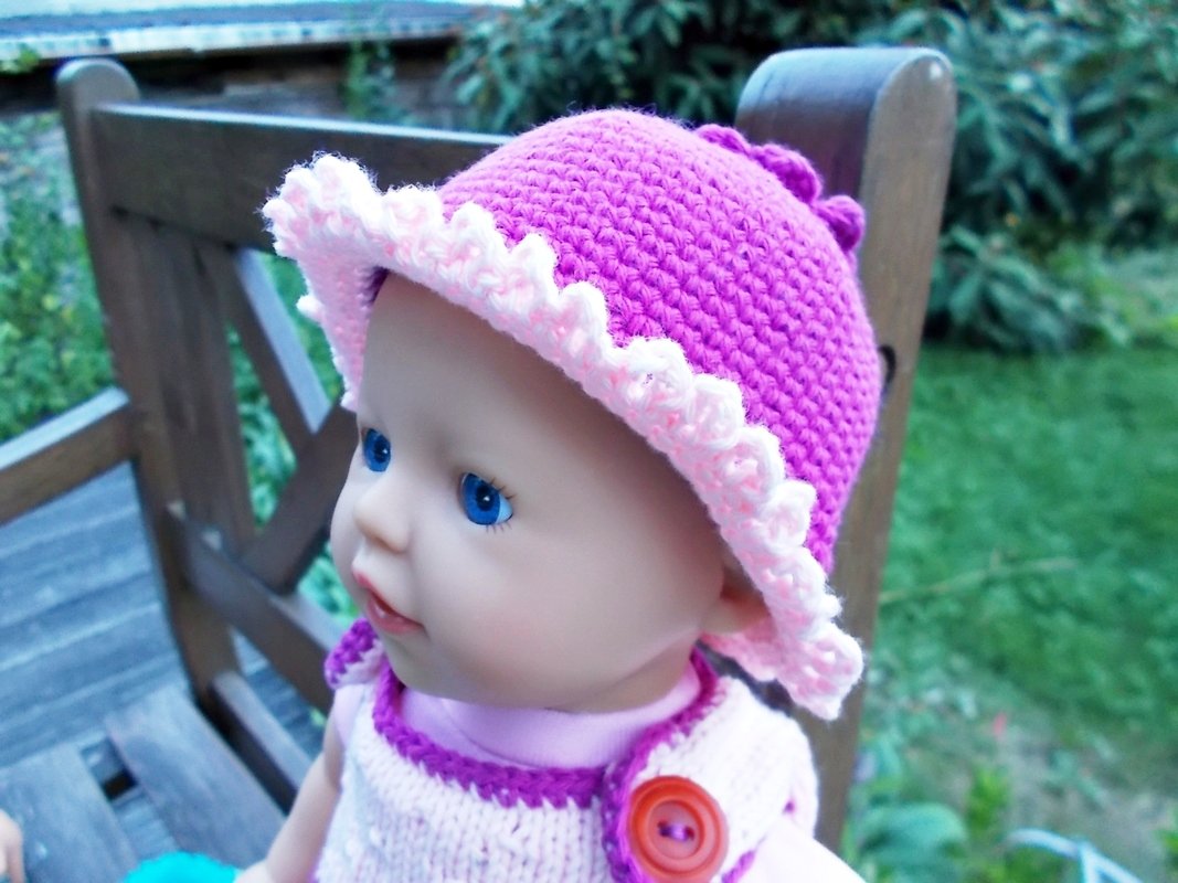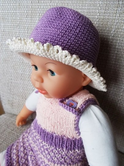 Dieses hübsche Sommerhütchen fürs Puppenkind lässt sich ganz schnell aus bunten Resten häkeln und macht jeder Puppenmutti Freude. Er kann in jeder Größe gearbeitet werden. Ich gebe in der Anleitung Tipps dafür und zeige, worauf zu achten ist.