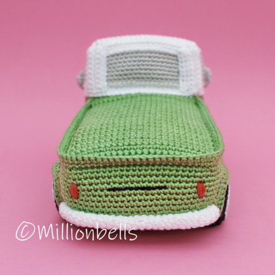 This PDF crochet pattern describes in US terminology how to crochet a classic single cab transporter amigurumi, as shown in pictures.