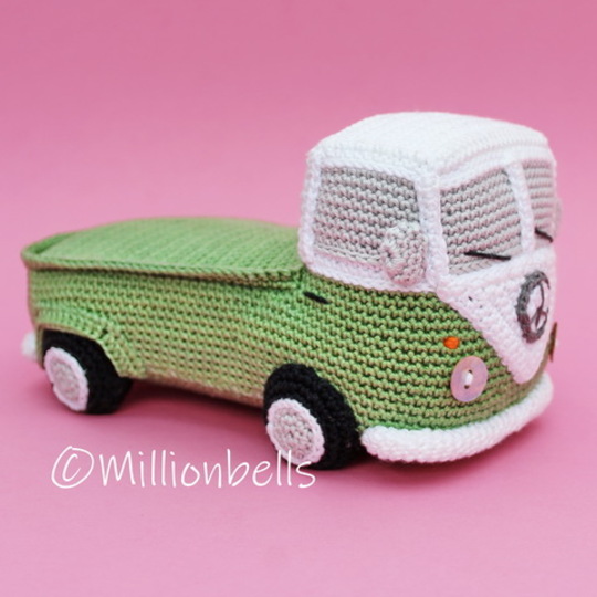 This pattern is also suitable for wool or acryllic yarn. The single cab transporter in the pictures was made using cotton yarn by SMC - Schachenmayr Catania.