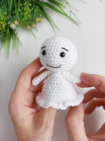 This easy to follow pattern includes one PDF file with detailed instructions, pictures and links for videos for how to crochet and assemble all the parts to make thesis cute ghost.