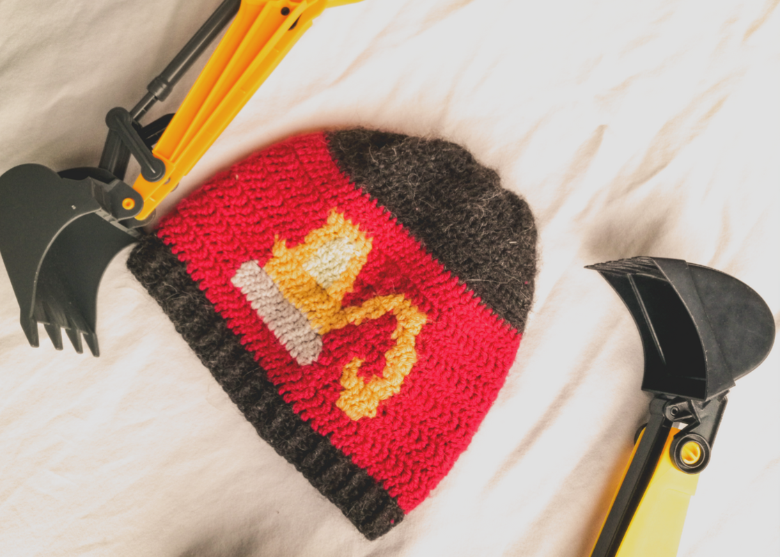 This hat is crocheted upwards from the cuff. For the digger / excavator pattern, a combination of Fair Isle and Intarsia is used. There are links to tutorials for: Fair Isle and Intarsia.