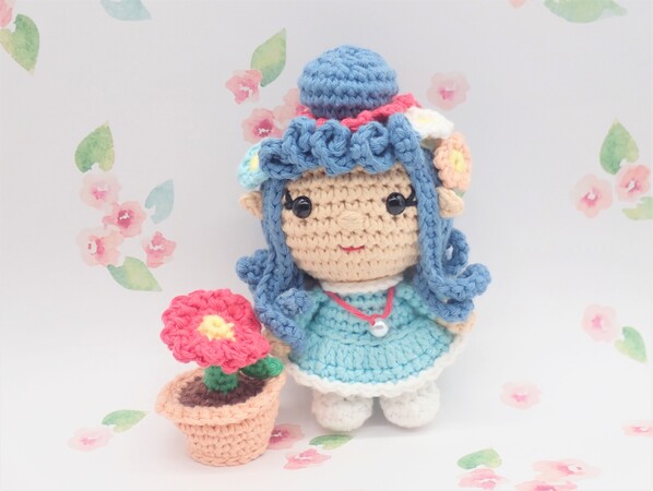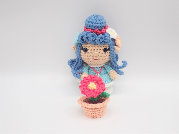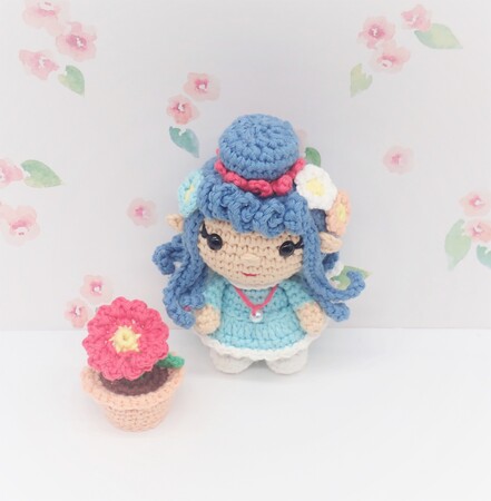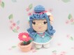 Doll is approximately 5 ½” tall (including bun) and flower pot is 2” tall.