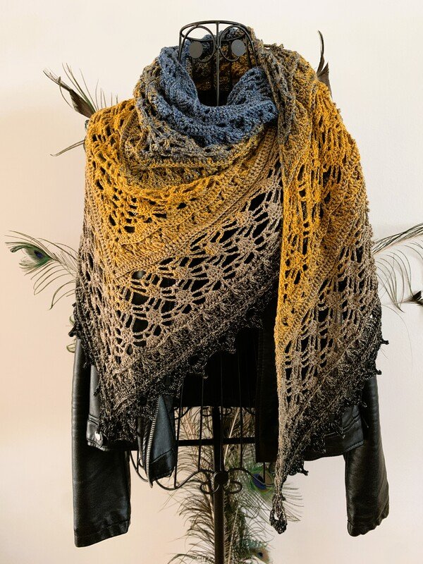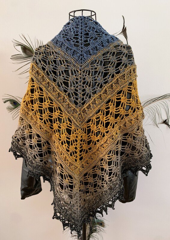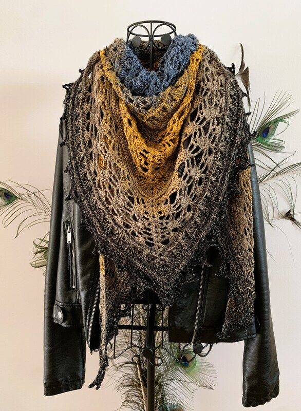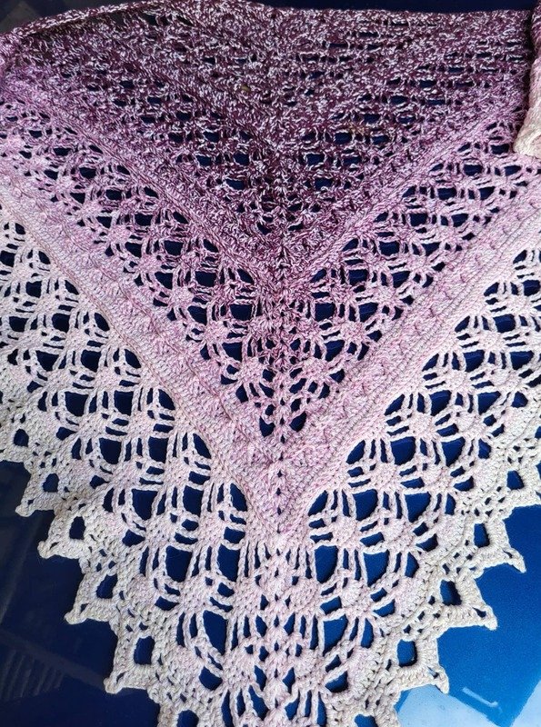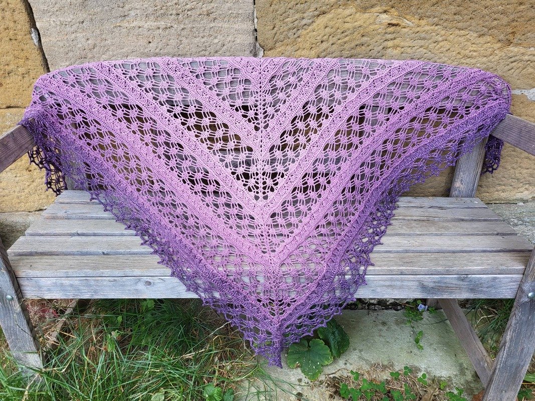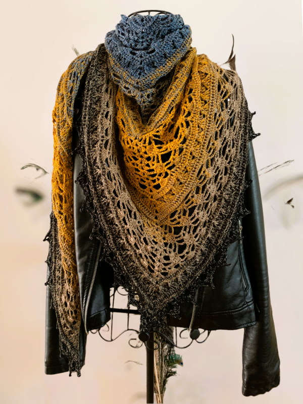 With this pattern you can crochet a beautiful triangular scarf "Algea". The pattern repeats itself after some rows, therefore the scarf can be crocheted in any desired size.