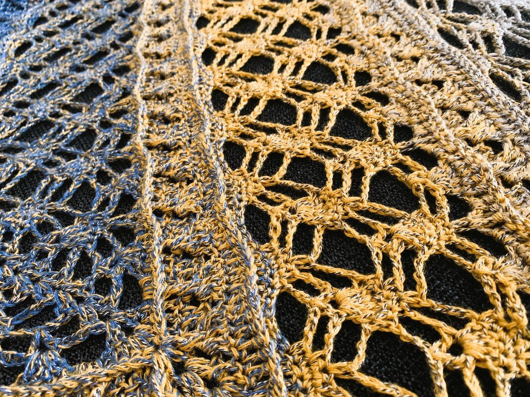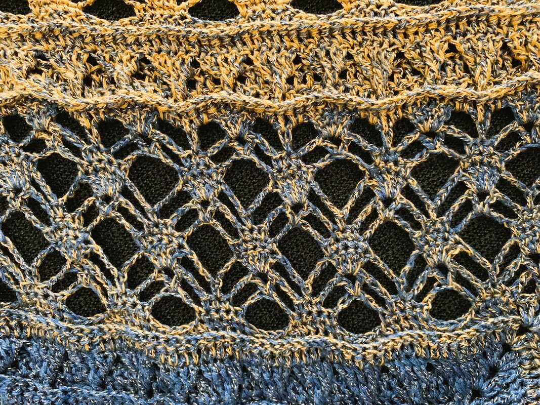 The pattern includes two different borders, you can make the border within the net pattern or after the more dense intermediate pattern that consists of front post and back post stitches, just as you prefer.