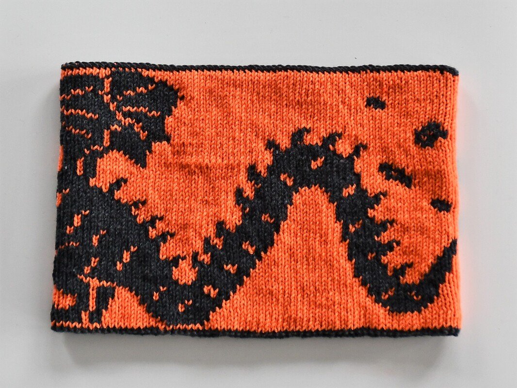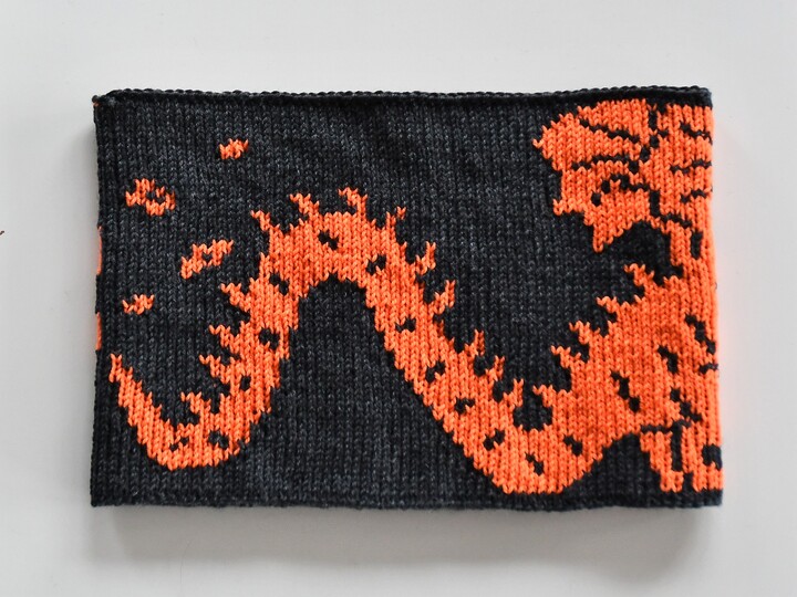 The little fire dragon Inaki likes it hot! He is still very young and playful, but oh, he can spit fire like a big one ๐ This cowl keeps small (and also grown up) dragon lovers warm. The design suggests warmth, and the double knitting makes the cowl really soft and cosy.