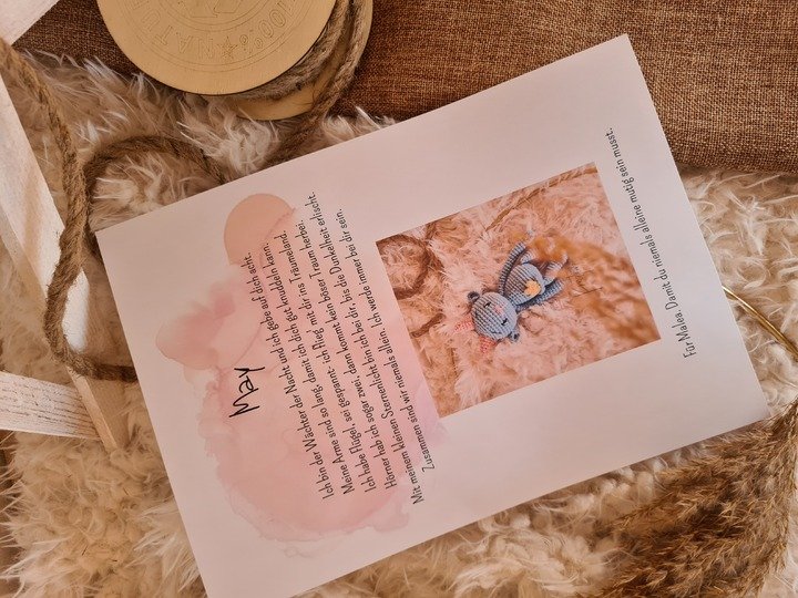 On 12 pages is described in detail how you can crochet step by step May the night watchman. In addition, May brings a little poem to introduce himself - in the photos you can already see it.