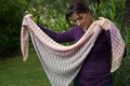 The shawl is a symmetric triangle, worked bottom-up in rows.