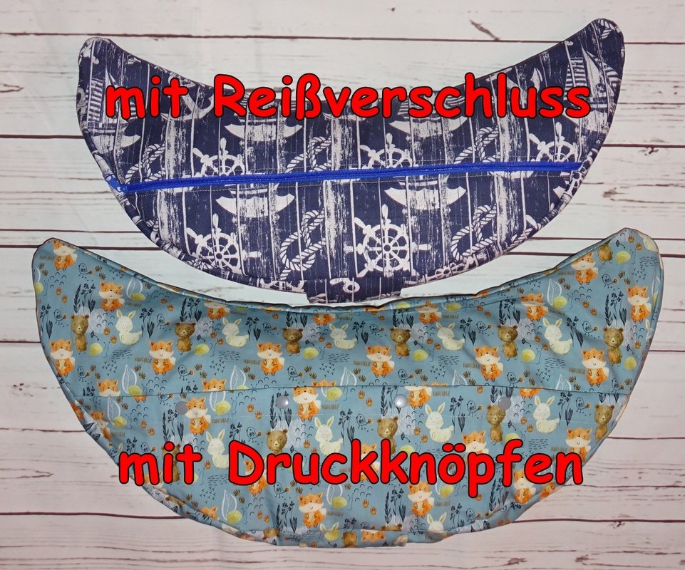 Außerdem benötigt ihr noch 50cm bzw. 60cm Reißverschluss oder 4 Druckknöpfe.