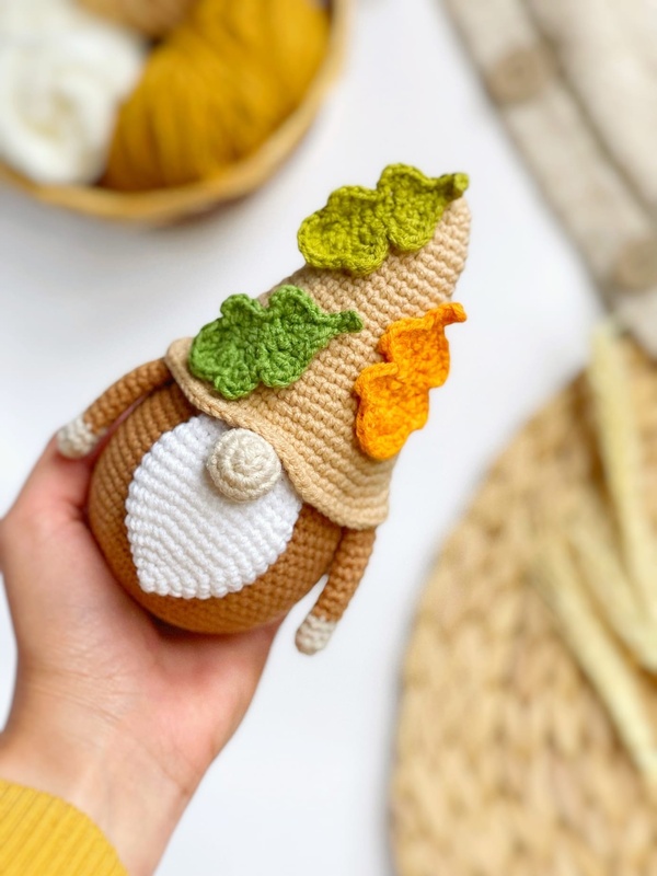 By following this crochet pattern, you can create the same autumn gnome. This will definitely give you an autumn mood and add some coziness for you or your friends (if you want to give this gnome to someone) 🍁