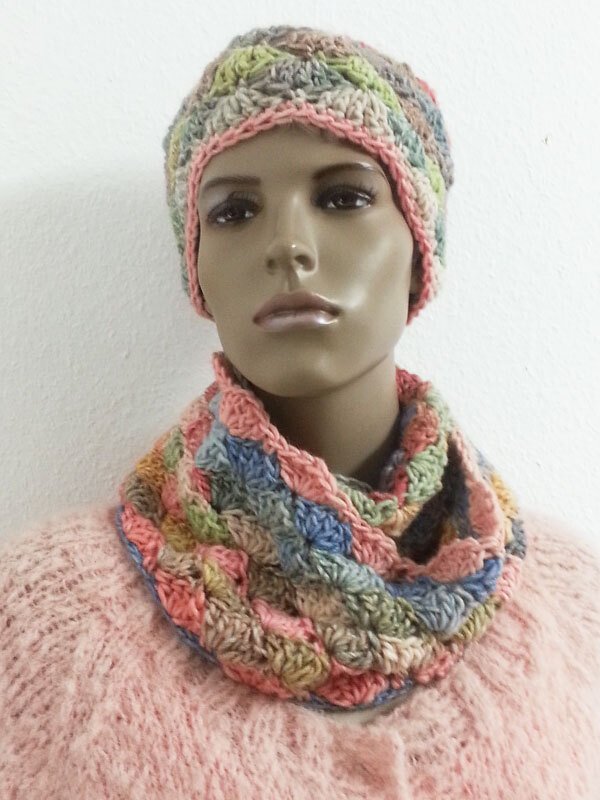 Leicht zu häkelnder Loop und dazu passend eine Mütze.