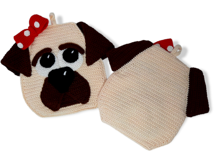 Crochet pattern pot holder "Pug Amber" by Wunderlich`s Kreativchaos