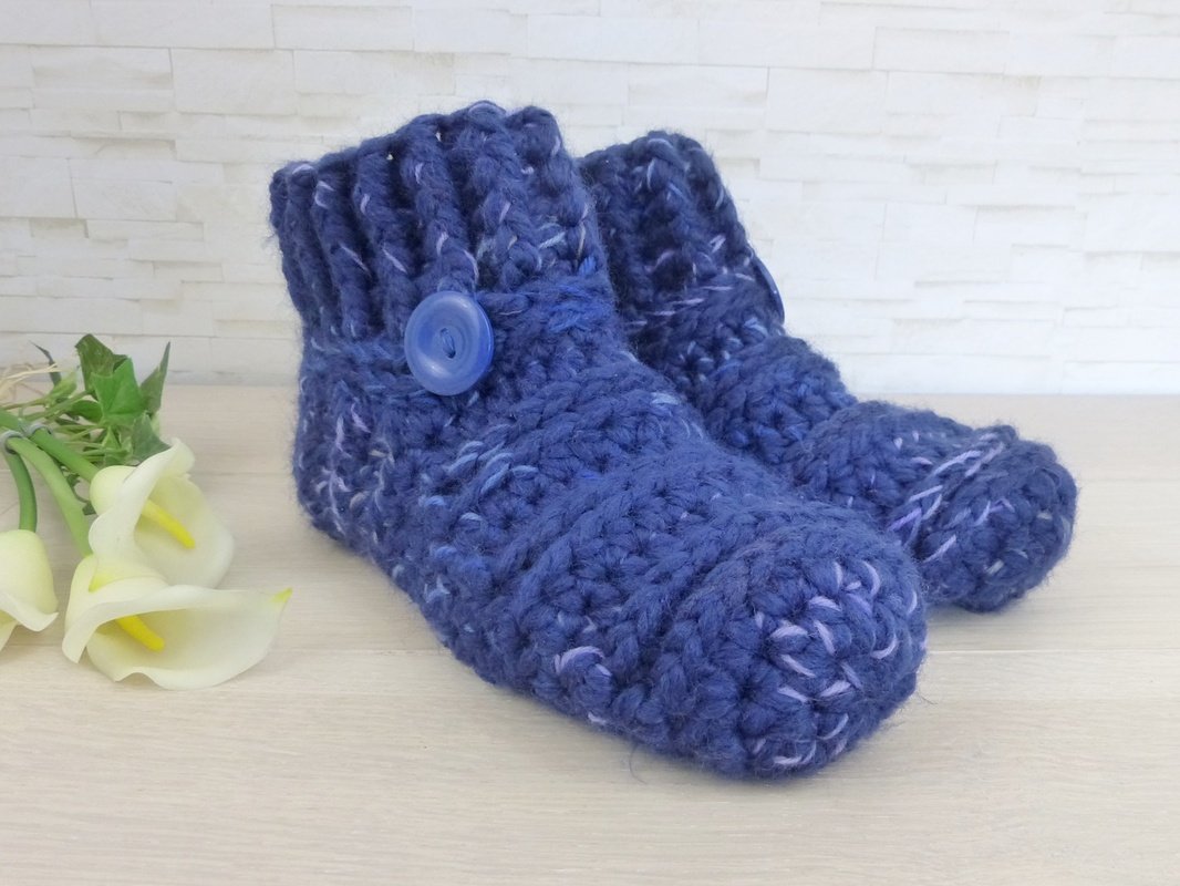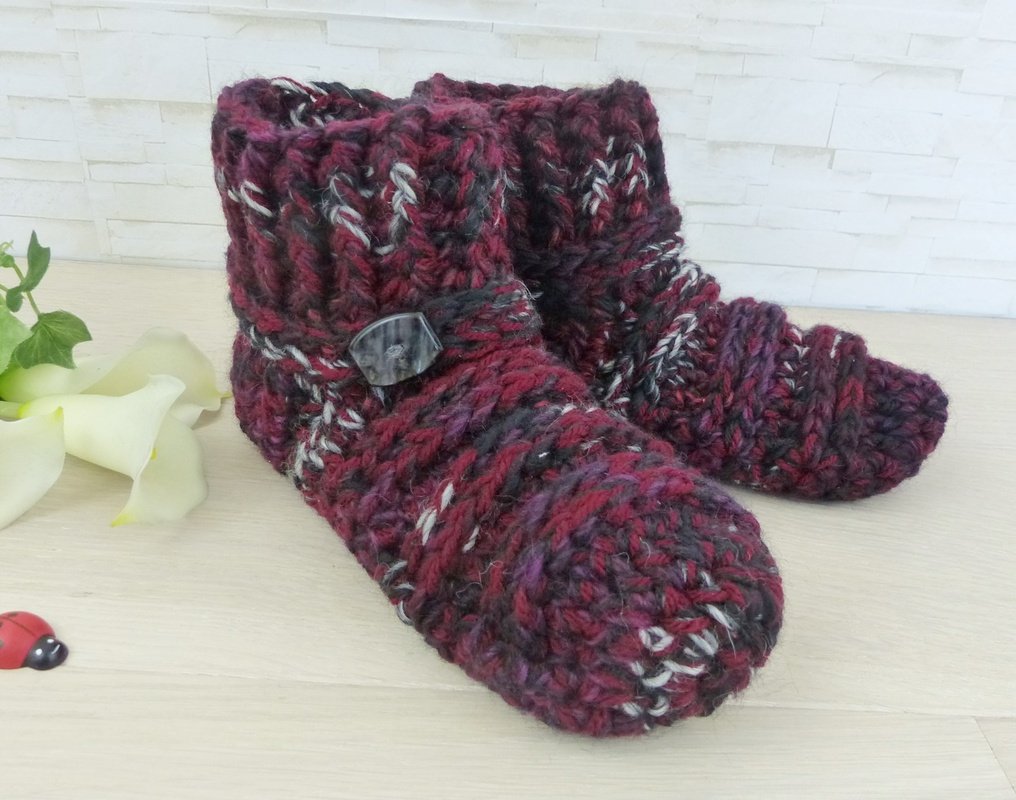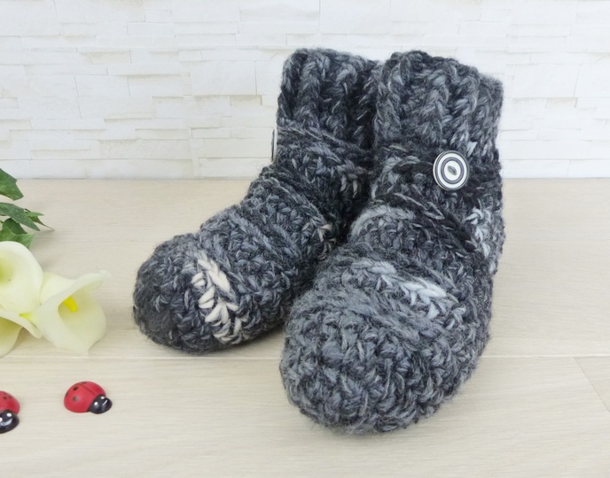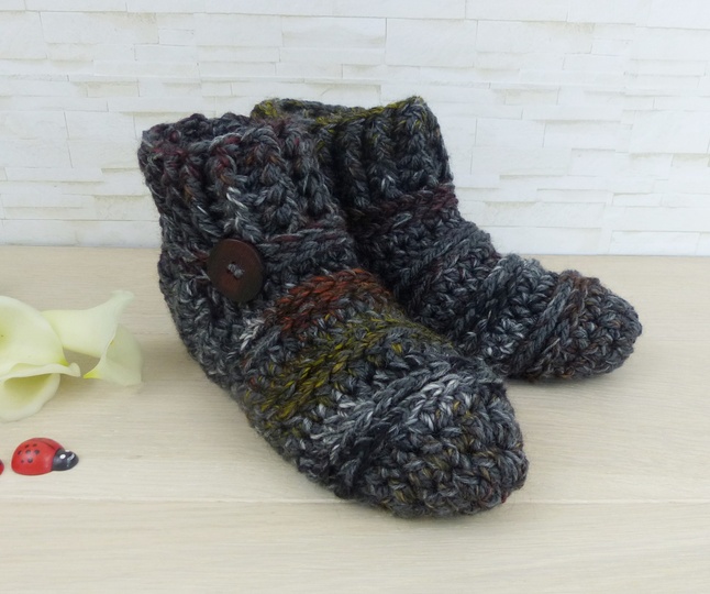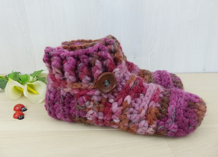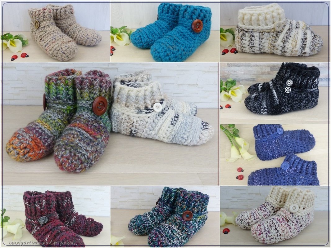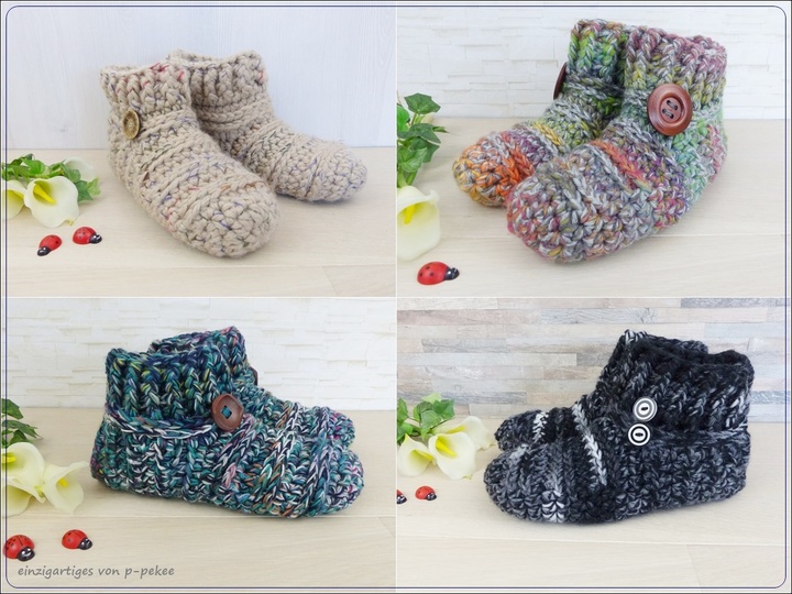 "Kuschlix" ist eine Wohlfühlsocke die mit dicker Kuschelwolle gehäkelt werden kann. Die Haussocken dienen aber natürlich auch als Bettsocke, Gästehausschuh, Puschen, Hüttenschuhe, Sofasocken. Die dicken Socken sind sehr bequem und natürlich auch warm.