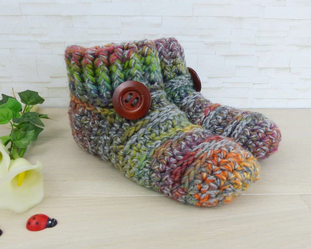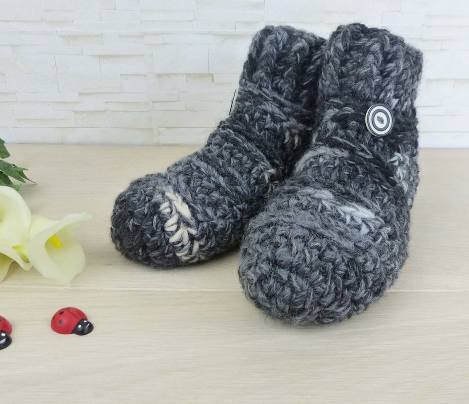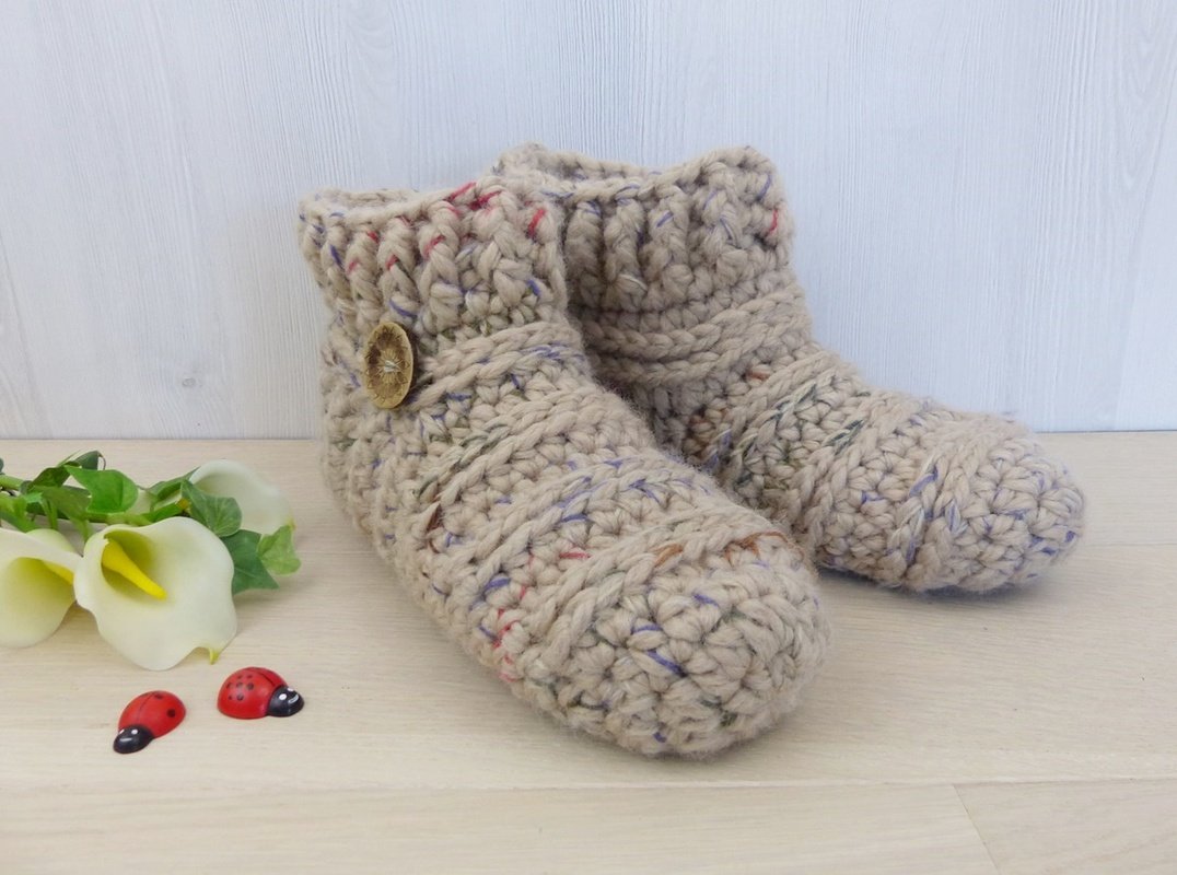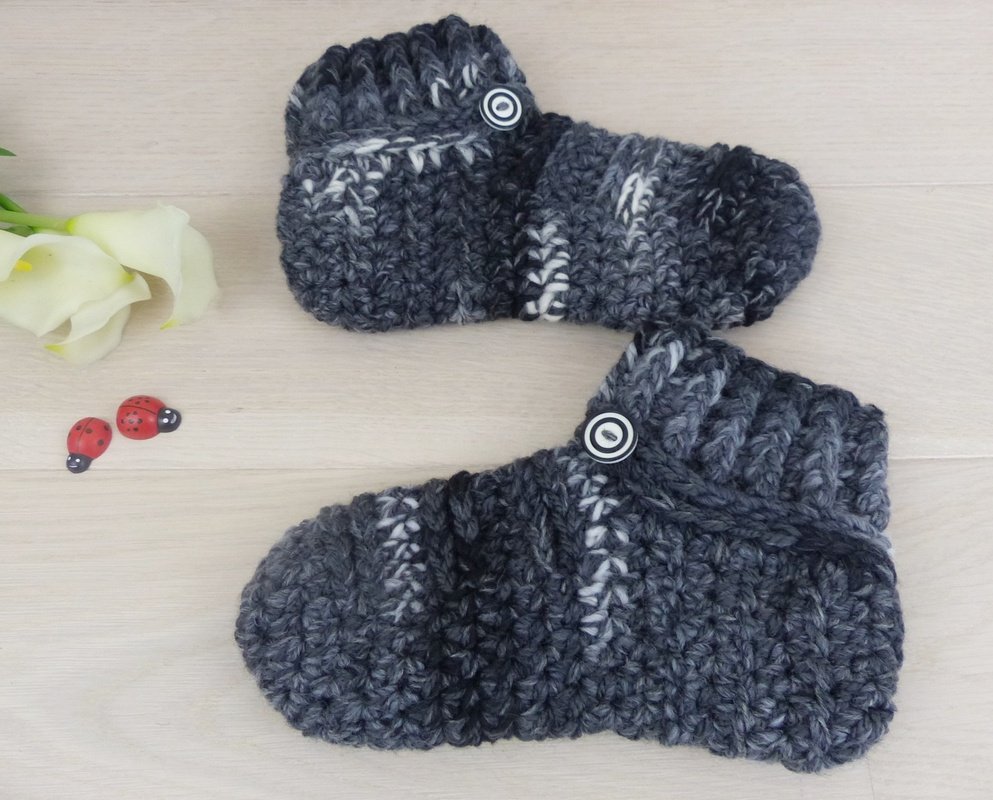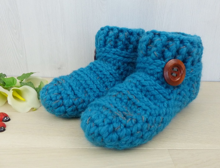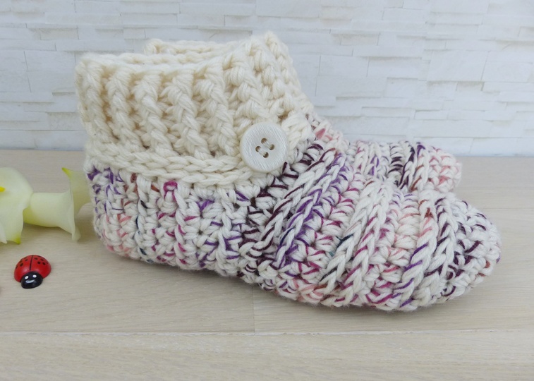 "Kuschlix" ist eine Wohlfühlsocke die mit dicker Kuschelwolle gehäkelt werden kann. Die Haussocken dienen aber natürlich auch als Bettsocke, Gästehausschuh, Puschen, Hüttenschuhe, Sofasocken. Die dicken Socken sind sehr bequem und natürlich auch warm.