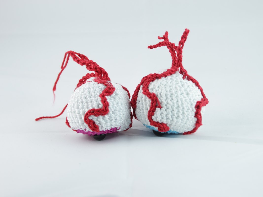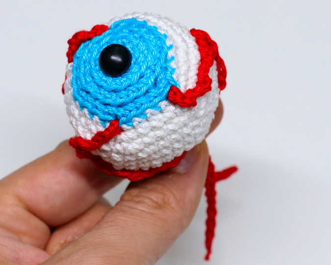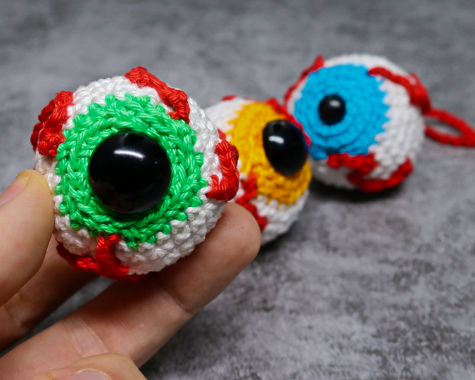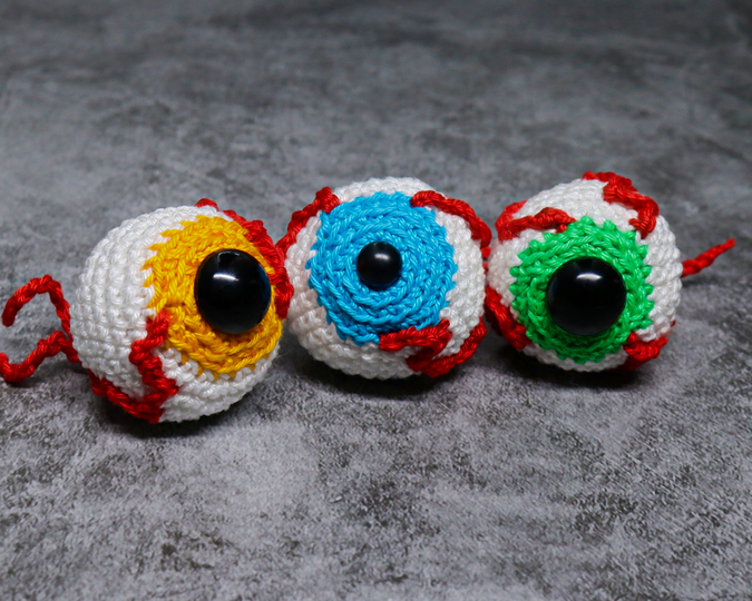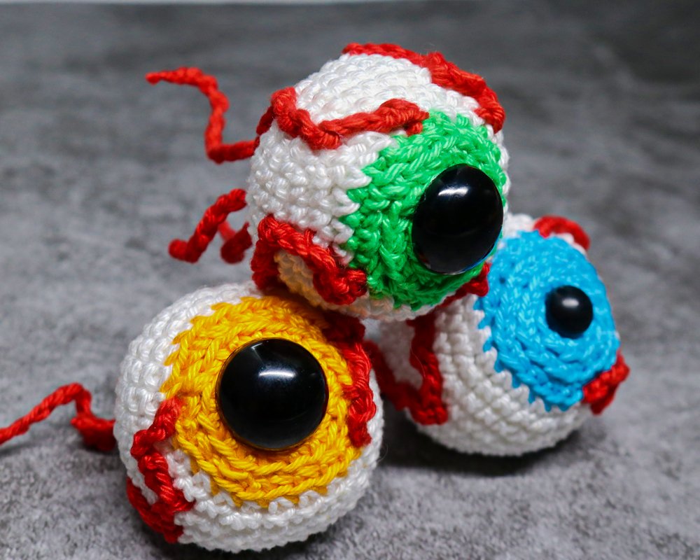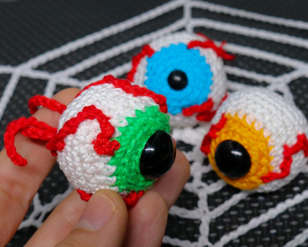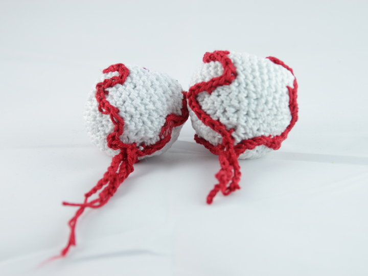 Crochet bloody eyeballs. The eyes are quickly crocheted and are also suitable as a small gift.