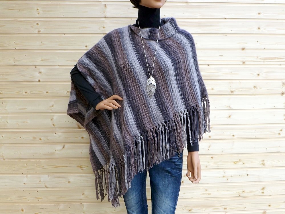 The poncho: totally modern and trendy, figure-flattering, and oh so practical! Simply throw it on and instantly look trendy while keeping warm and dry. And the best part is you can easily knit it yourself.