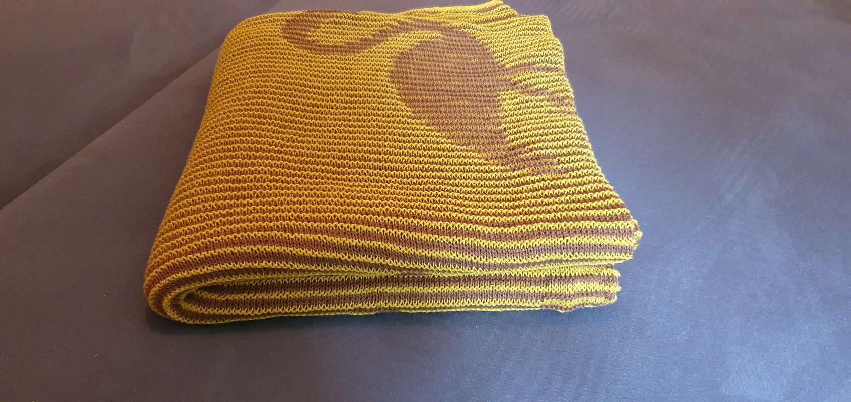 Ich habe für diese Decke 2 Unifarbene Bobbel benutzt, die ich mir selbst gewickelt habe (50% Baumwolle / 50% Polyacryl).