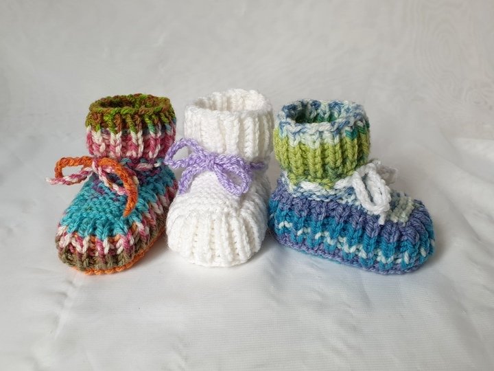 Strickanleitung Baby-Schuhe, Booties ohne Nadelspiel, Sohlenlänge ca. 10 cm