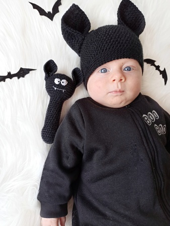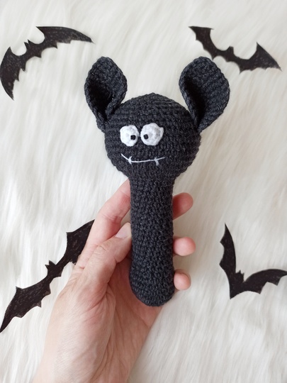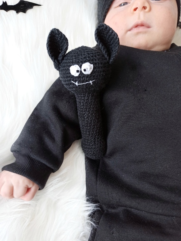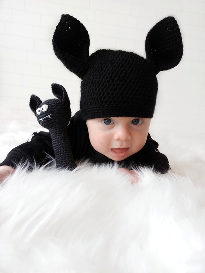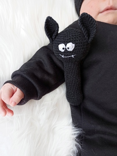 This crochet bat pattern is a great Halloween baby gift. This is a perfect toy for little hands and safe for all ages. It makes a wonderful baby shower gift and a stylish addition to any nursery.
