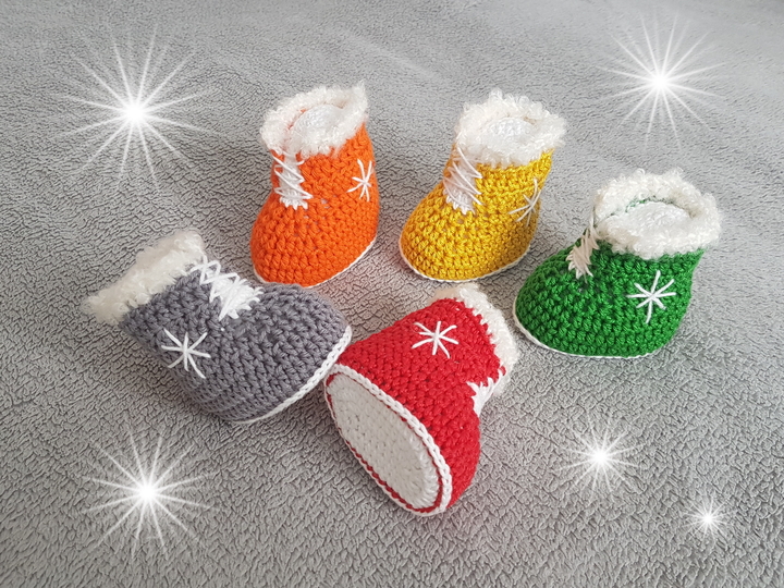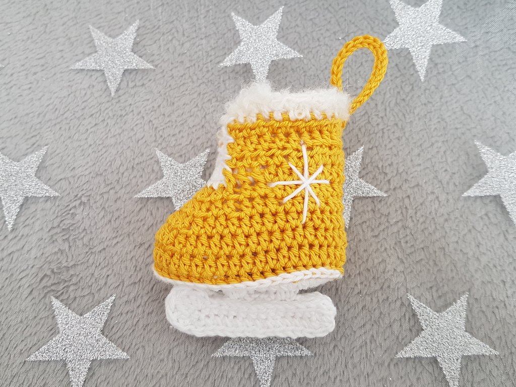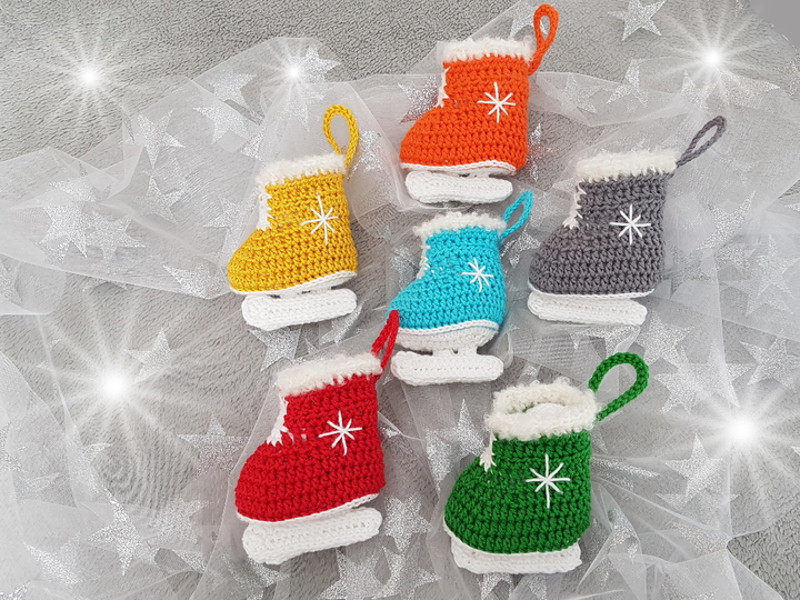Diese kleinen Minischlittschuh sind schnell gehäkelt und machen immer Freude und gute Laune.