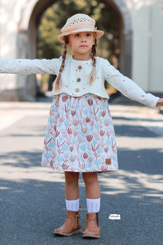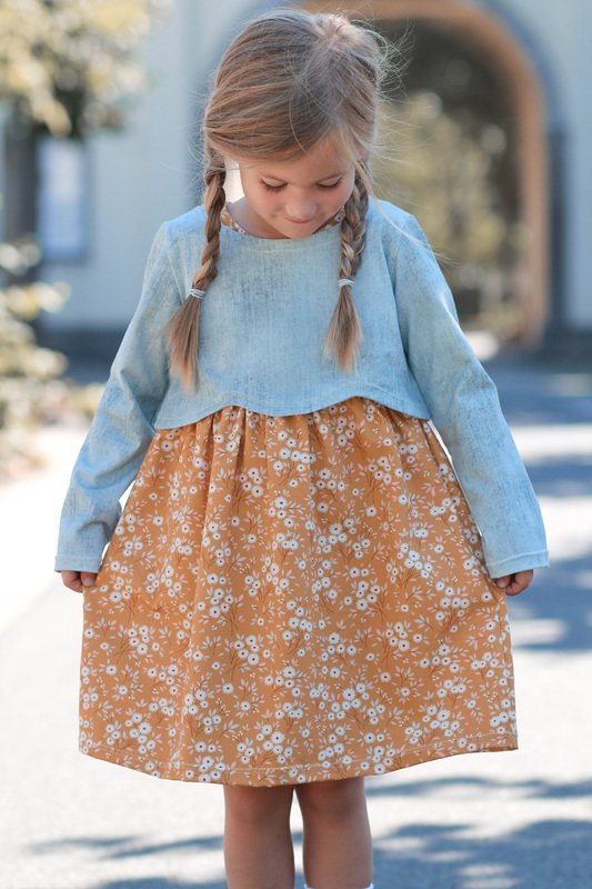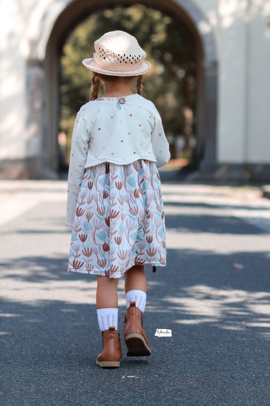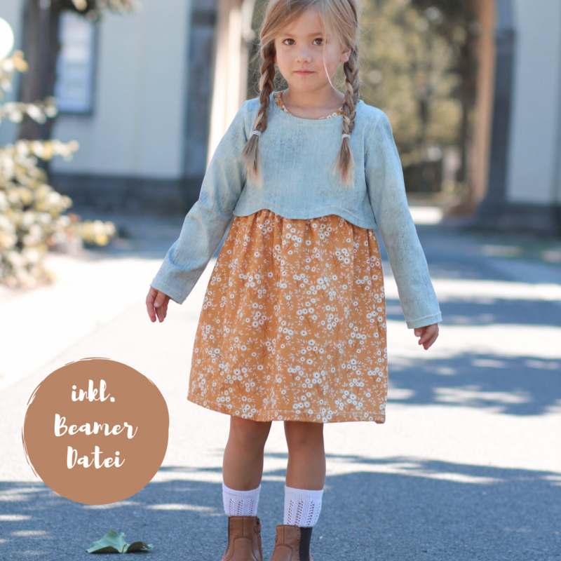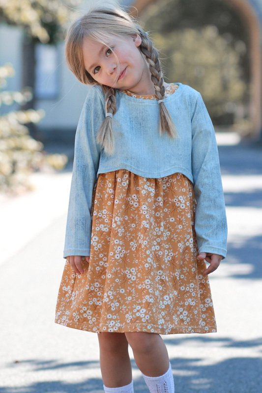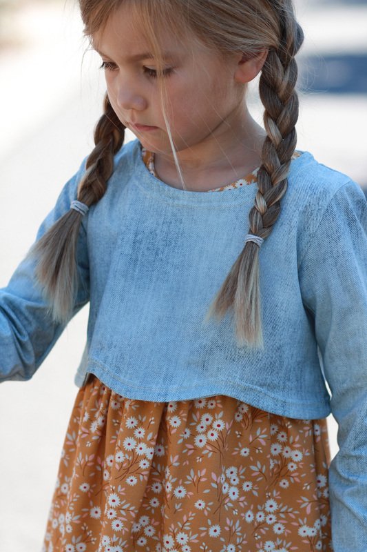 Das Curved Crop Top ist ein süßes Kurz-Top für Mädchen und Teenies und wird in Kombination mit einem Unterkleid (Basic Kleid) genäht.
