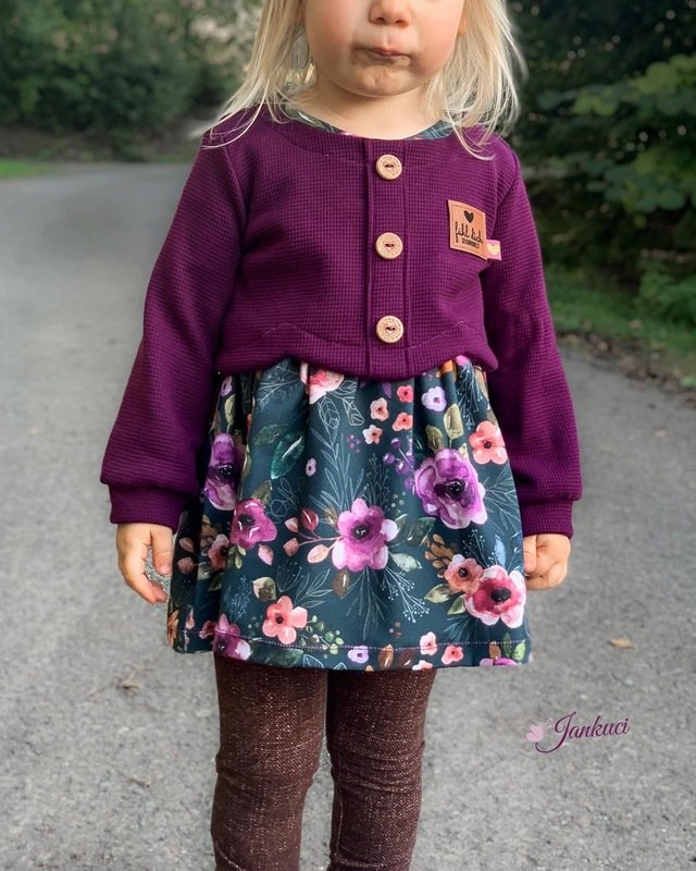 Das Oberteil kann an Vorder- oder Rückenteil mit einer Fake-Knopfleiste oder mit einem Tropfenausschnitt am Rückenteil genäht werden.