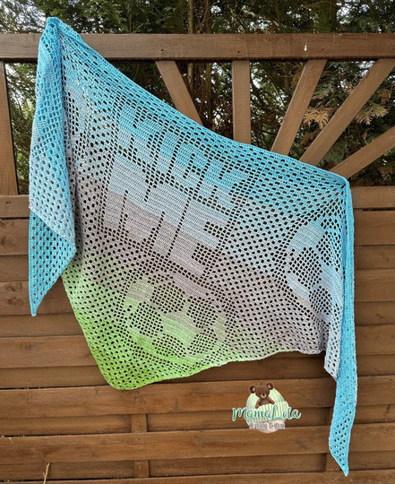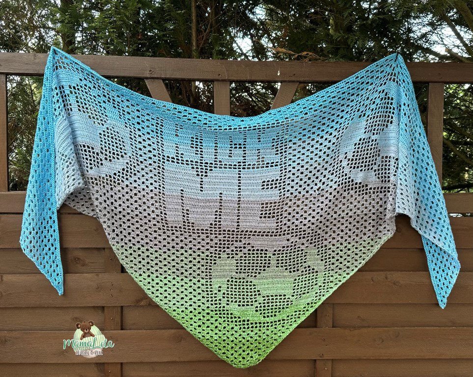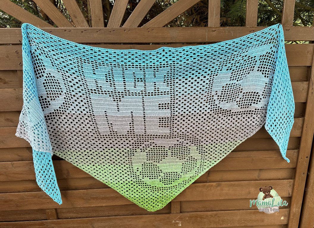 Ein Tuch im Grannymuster wird eher spitz und schmal wohingegen ein Tuch im Filetmuster eher flach und breit wird.