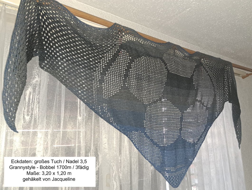 welchen Stil ihr euch entscheidet. Ein Tuch im Filetstil wird aber IMMER mehr an Garn verbrauchen als selbiges im Grannystyle!